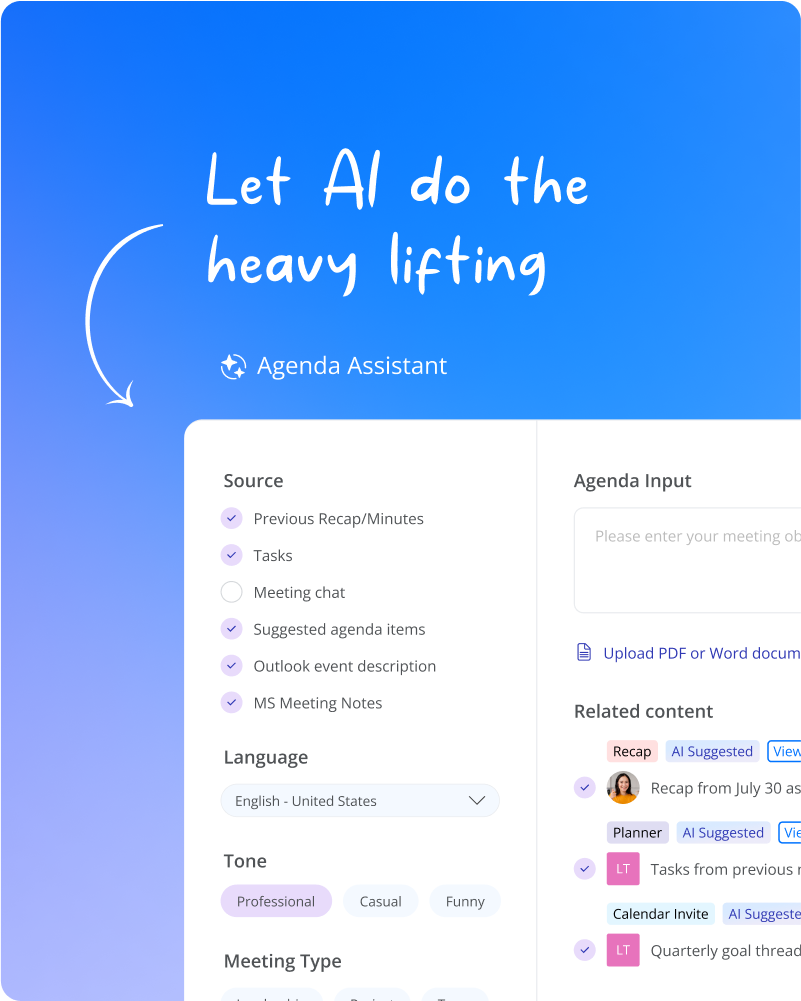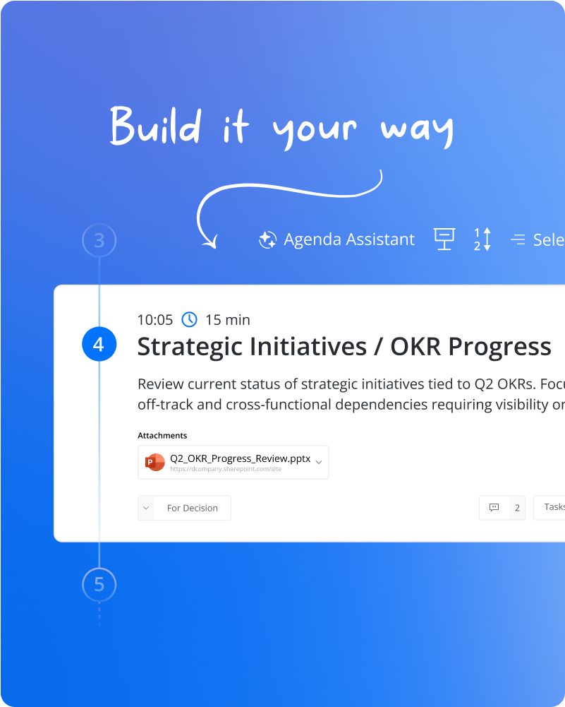 Bring structure, speed, and consistency to every meeting with smarter agenda tools that scale across your organization.